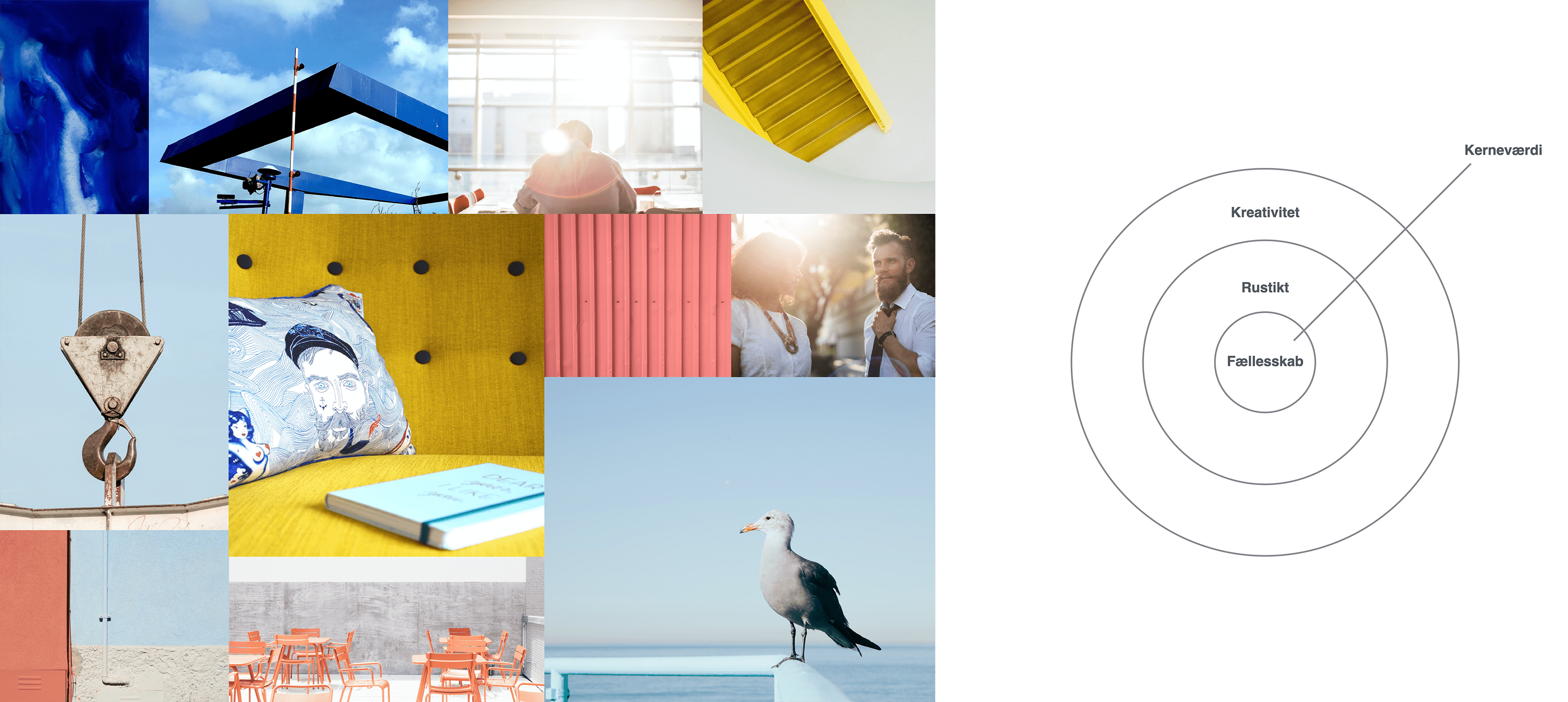 The phase also included ethnographic field studies of Værftets localization, to get a feeling of the environment and the soul of the place. We wanted to be true to the old building and history and have a red thread throughout the whole experience of the brand.